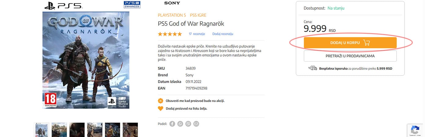 Odaberi željeni artikal i klikni na „Dodaj u korpu“.