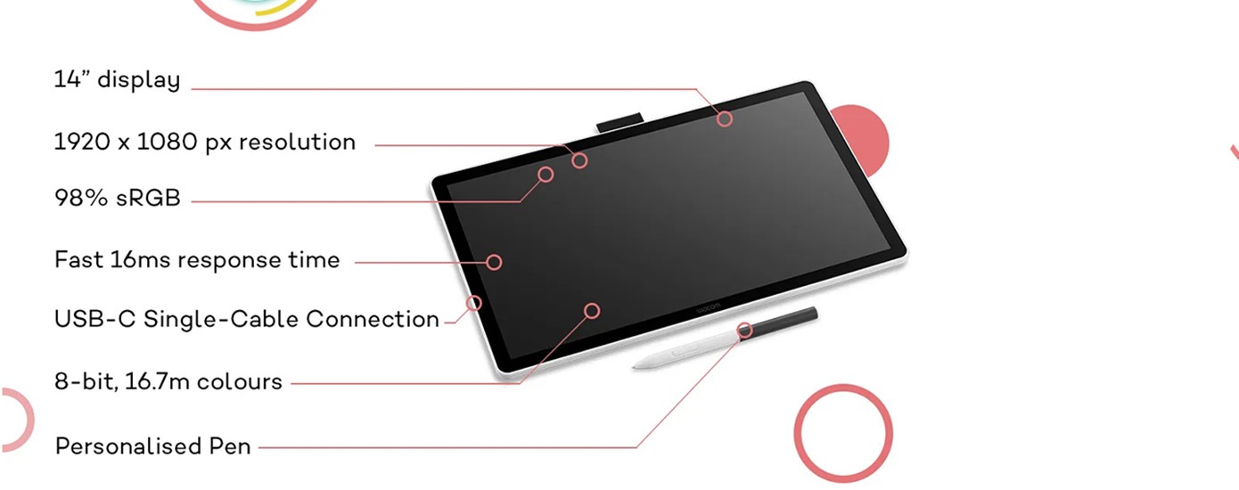 Wacom One 14 — 14-inch Full HD pen display for beginners and students